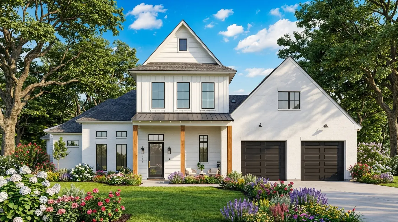 Imagine walking into Plan 22-002, a stunning 2-story traditional, modern style farmhouse offering 2942 square feet of comfortable living space, plus an additional 793 square feet in the 2-car front entry garage and 574 square feet of delightful, porches. Picture yourself relaxing on the expansive rear porch, complete with an outdoor kitchen and fireplace – perfect for summer evenings and cozy gatherings.