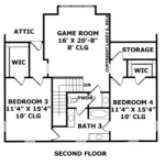 Upstairs, two additional bedrooms (3 and 4), each measuring 11'4" x 15'4" with walk-in closets, provide comfortable spaces for family or guests. A spacious game room (16' x 20'8") offers endless possibilities for recreation and fun. A shared bathroom ensures convenience for the upstairs bedrooms.