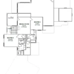 Upstairs, the second floor provides additional living and sleeping space for family or guests. A central media room offers a cozy spot for movie nights or quiet relaxation. Two additional bedrooms, one with its own ensuite bathroom and walk-in closet, provide comfortable accommodations for loved ones. A private balcony offers a peaceful escape with views of the surrounding property.
