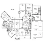 The left wing of the home is your private sanctuary. The master suite, accessed through a private hall, includes a bedroom with a 12-foot tray ceiling and an integrated sitting area. The master bath is a spa-like retreat with separate vanities, a walk-in shower, a soaking tub, and a stone accent wall. His and hers walk-in closets offer ample storage.